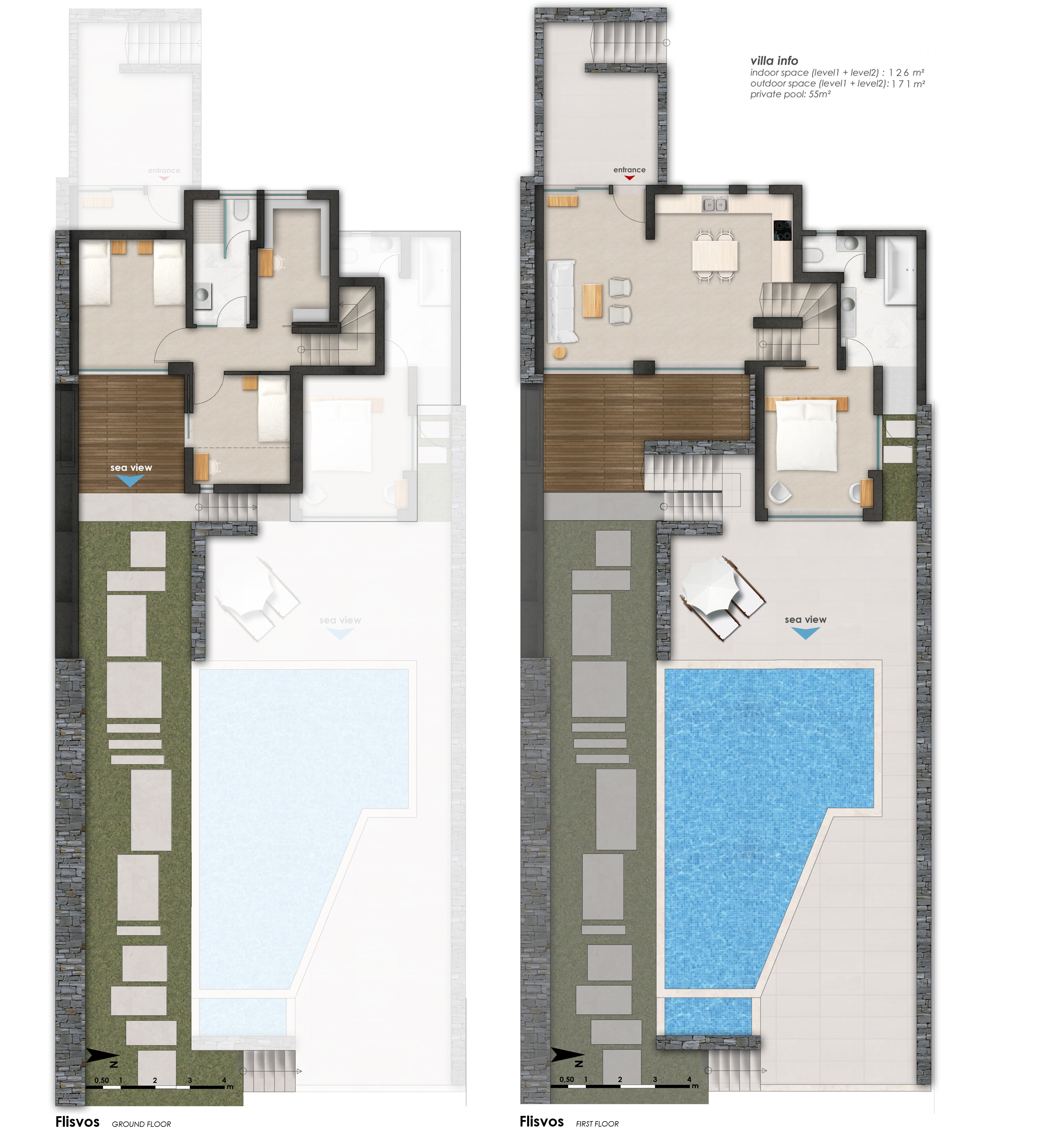 Espace extérieur : terrasse privée et jardin privé ±171 m2