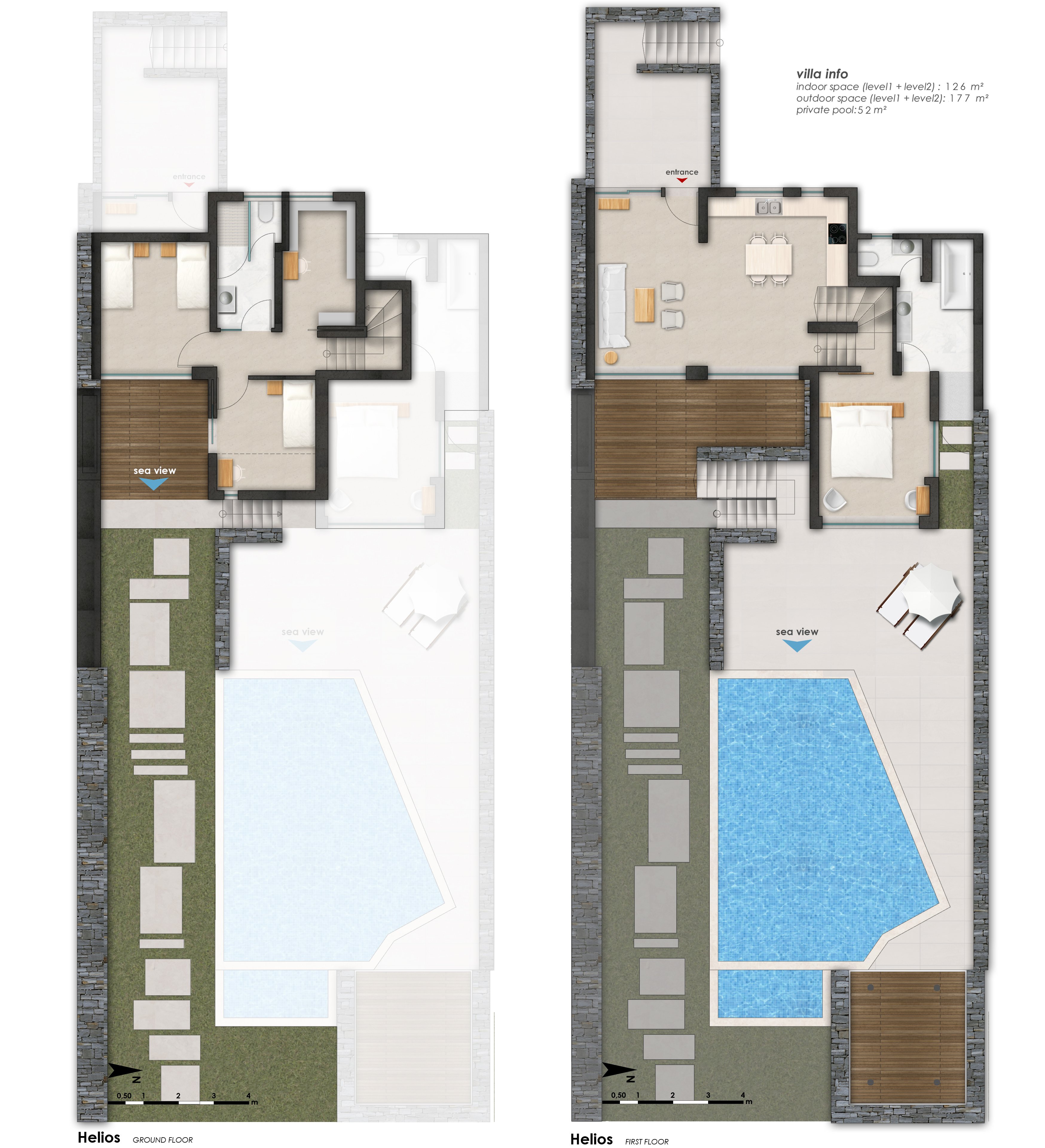 Собственный панорамный бассейн: ± 52 кв. м. (с подогревом в Апреле, до середины Мая и в конце Октября)